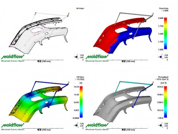 • Knit/Weld Line Localization: Identify potential weak points in advance, then adjust gate positions or runner designs to minimize their impact on part strength, aesthetics, and optical performance.